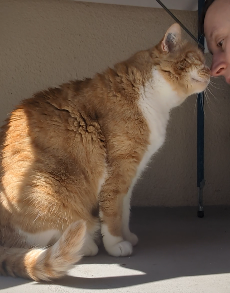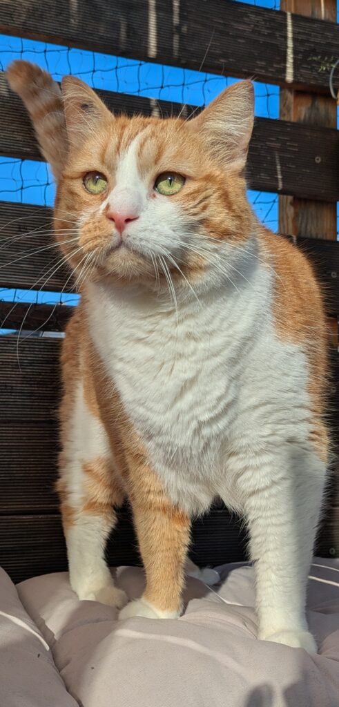 Don José, Spitzname Donni, lässt sich durch nichts aus der Ruhe bringen. Er liebt Leckerlies und ist nicht nur beim Fressen ein Genießer. Er landete 2024 im Tierheim, da seine Besitzerin sich nicht mehr um kümmern konnte, er wurde wohl lange Zeit vernachlässigt und fraß sich aus Langeweile viele Pfunde an, die er mit viel Bewegung fleißig wieder abtrainierte. Seine Futtermittelunverträglichkeit/Allergie gegen Fertigfutter zwang mich schließlich mich intensiv mit dem Thema Katzenernährung auseinander zu setzen und hat mich zum begeisterten Anhänger von BARF Ernährung gemacht.